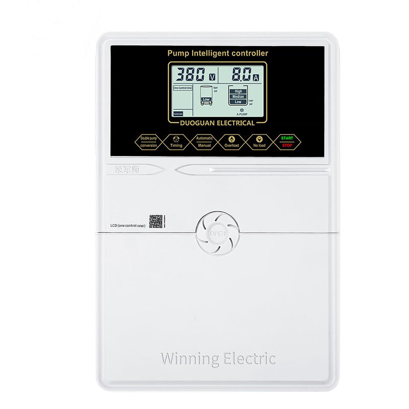O painel de controle da bomba trifásica é adequado para bombas de superfície e submersíveis de até 22 kW. Possui configuração de proteção contra funcionamento a seco, garantindo proteção total do sistema de bomba. A caixa de controle é um painel de controle elétrico que possui corte de sobrecarga aprendido automaticamente e reajustável manualmente, e placa de terminais para conexões elétricas e possível conexão de interruptor de pressão/bóia.